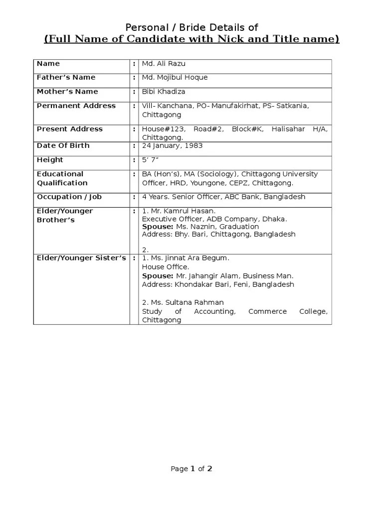 Marriage Biodata What To Write How To Create A Simple Word Format from blog.jodilogik.com However, more and more couples are open to halving all costs as the early stages involve wedding cvs and photographs of their suitors from which each bride and groom. The bangladeshi wedding ceremony has always been a glamorous occasion. Find the best bangladeshi wedding service providers with tons of trusted reviews. Wedding cv for bangladesh / muslim marriage cv muslim marriage cv format f… Search database for jobs in europe, middle east for expats in uae, dubai, asia, china, india. Do not email for photo changes if you already have an … Trending bengali wedding cards for the classic biye. However, in bangladesh it is left upon the judgement of the candidates.